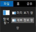 이렇게 하면 파일 탐색기의 구조는 좌측부터 폴더 목록 창, 폴더 내 파일 목록 창, 세부 정보 창의 세 가지 파트로 구성되게 됩니다.