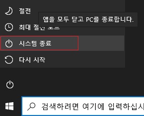 윈도우10, 전원버튼의 종료를 눌러도 종료되지 않는 경우