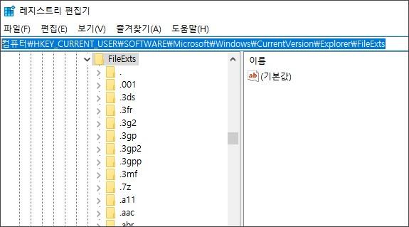 컴퓨터\HKEY_CURRENT_USER\SOFTWARE\Microsoft\Windows\CurrentVersion\Explorer\FileExts