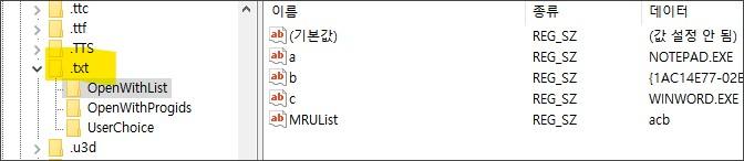txt 폴더의 하위 폴더에는 3가지가 있는데 OpenWithList에서 연결 프로그램을 정의합니다.