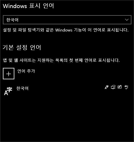 이제 윈도우 설정의 언어 목록 창을 살펴보면 한국어 하나로 깔끔하게 정리되었습니다.
