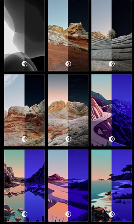 기존의 배경화면으로 쓰이는 13종의 스틸 이미지에 새로운 8개의 배경화면이 추가되었습니다. 크게 실사 이미지를 바탕으로 한 배경화면과 백터 그래픽화한 일러스트 배경화면 이미지로 구분할 수 있습니다.