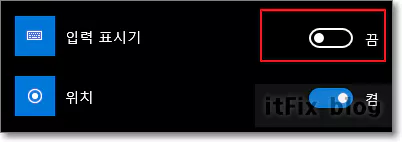 마지막으로 입력 표시기라는 항목의 스위치를 끕니다.