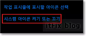 창을 아래로 내린 다음 '시스템 아이콘 켜기 또는 끄기'를 클릭합니다.