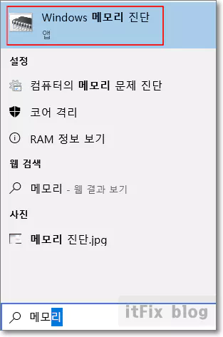 윈도우 작업 표시줄에 메모리라고 입력한 다음 메모리 진단을 눌러 검사를 진행해 보시기 바랍니다.