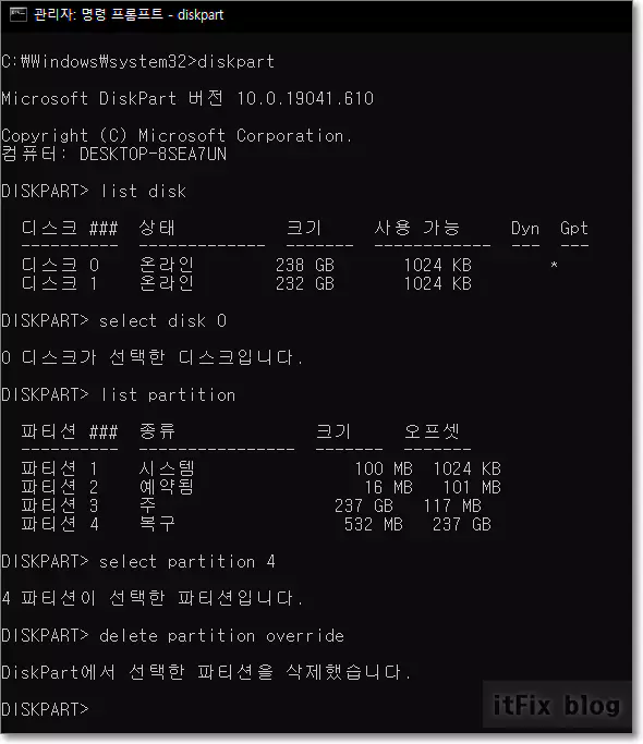 1. 복구 파티션의 제거