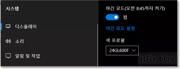 기타 윈도우 10에서 야간 모드의 적용에 오류가 보이거나 참조해야 할 내용은 아래의 링크를 살펴보시기 바랍니다.