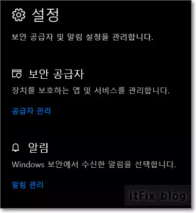 1. 윈도우즈 백신 등의 공급자(앱) 관리