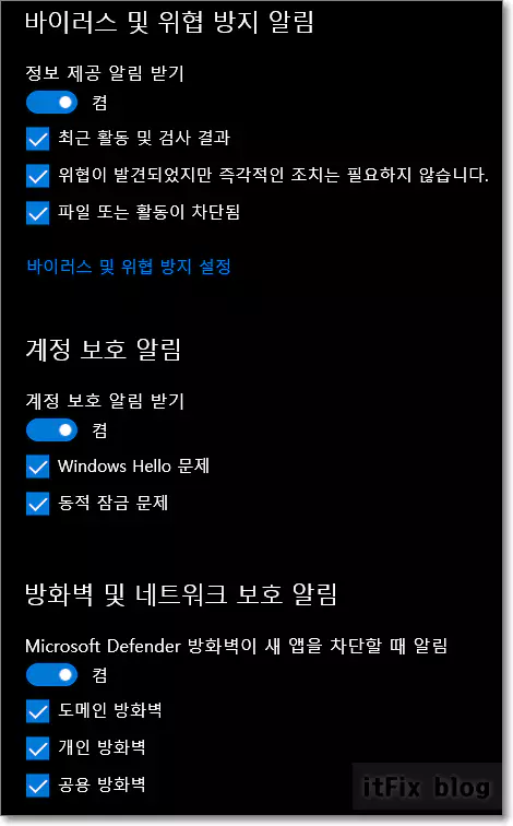 어찌됐든, 윈도우 디펜더가 아닌 다른 백신을 사용하거나, 다른 백신을 사용하던 도중 윈도우 디펜더로 복귀하려고 시도할 경우, 윈도우 작업 표시줄의 알림 영역에 너무 많은 보안 알림이 떠서 괴로운 경우에 꼭 살펴보아야 하는 옵션이 있습니다.