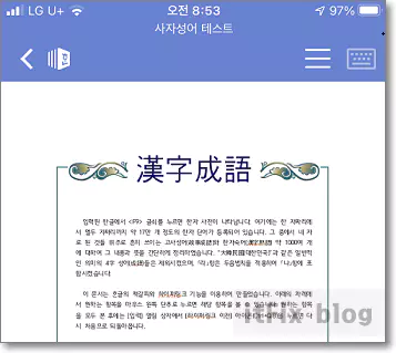 아이폰에서 해당 파일을 한컴 오피스 뷰어로 열면 첫 화면은 아래와 같은 모습을 하고 있습니다.
