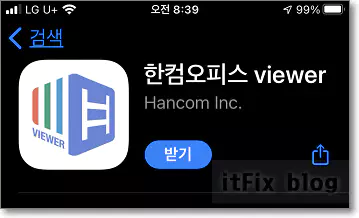 아이폰의 경우에는 앱스토어, 안드로이드폰의 경우에는 플레이스토어로 이동한 다음 한컴오피스 viewer를 다운로드해 휴대폰에 설치합니다.