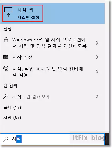 윈도우 작업 표시줄의 검색창에 시작이라고 타이핑한 다음 '시작 앱'을 클릭합니다.