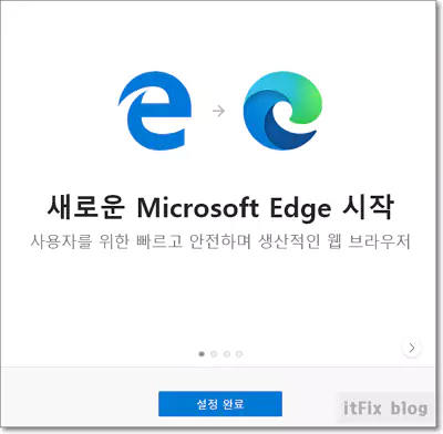 엣지의 수정 버튼 한 번만 눌러준 다음 PC를 재시작하면 모든 엣지의 업데이트가 이루어지며 경우에 따라 초기화한 효과를 거둘 수도 있습니다.