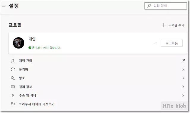 동기화 중인지의 여부는 엣지의 설정을 눌러보면 초록색 글씨로 "동기화가 켜져 있습니다"라는 문구가 보이면 됩니다.