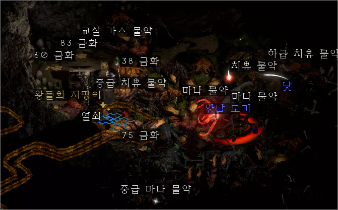 특이한 점은 함을 찾는 부분은 노멀을 완료하면 호라드릭 큐브가 존재하게 되므로 악몽이나 지옥 모드에서는 함을 제외한 자루와 꼭지만 찾으면 됩니다. 또한가지로, 자루는 왕들의 지팡이, 꼭지는 독사의 목걸이를 말합니다.